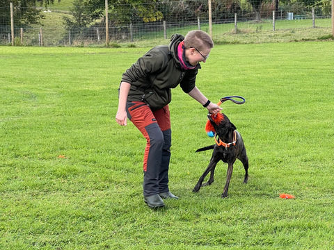 I cannot recommend Gosia enough, I started coming to her in 2021 with my traumatised, rescue Galgo Espanol, Josie, who was scared of people, could barely be touched and had extremely strong prey drive having been trained and used for hunting previously. Gosia’s patience and understand of Josie was incredible and now not only is she a cuddle bug with people, able to be off lead with reliable recall but we have obtained the Kennel Club Good Citizen Silver Award, and she is one of only 4 Galgos globally that have obtained a DMWYD Advanced Master Trick Dog title. None of this would have been possible without Gosia’s guidance, help and support. Josie is a dog who gets bored easily and she LOVES doing scent detection and Proprioception classes with Gosia too. Working with Gosia has hugely improved my relationship with my dog and made me a much better handler and owner.